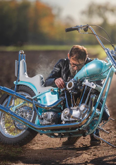 Dave Polgreen with his stunning, award-winning Harley KHK 2022 Born Free custom show bike - Teppo recommissions the coolest survivors from the glory days of choppers and we bring you the story of these pre-unit Triumphs from Germany - Ricky Reyes found time to build himself a hardcore little Sporty street chopper, in between customer builds at Anchor Moto in Kansas City - Tadahiro is a true adventurer and chooses to tour Japan on a bone stock 1950 Hydra Glide - Verne Hammond's knucklehead chopper - Non’s amazing Bangkok-based 1945 WLK - Sam Webber's 2-time USA-crossing 1950 Panhead chopper.